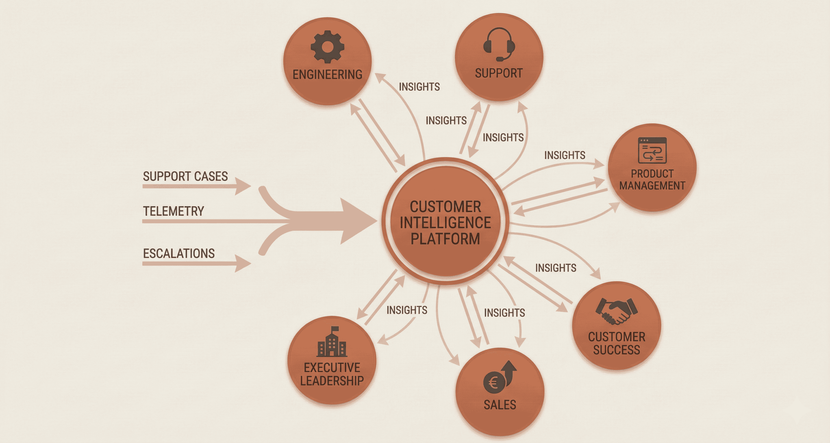 In large organizations, customer data lives in many places. Support cases in one system. Escalations in another. Product telemetry in a third. Sales feedback in spreadsheets. NPS scores in a survey tool. Each team builds its own dashboards, defines its own metrics, and draws its own conclusions.